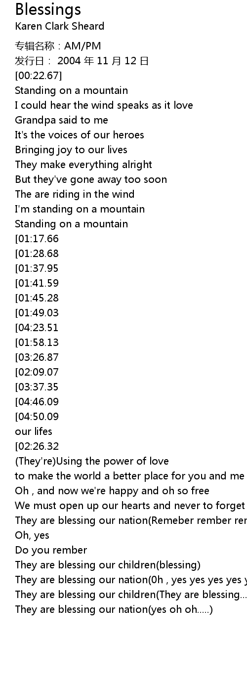 | [04:43.03][03:37.35][02:12.90] | They are blessing our nation |