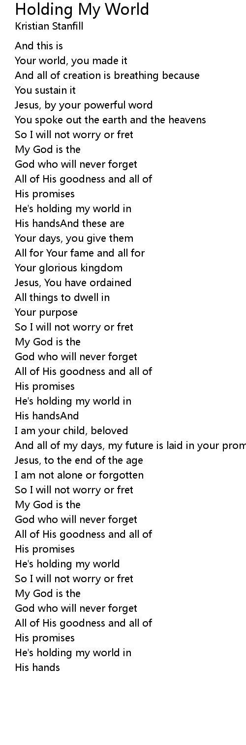 He's holding my world in |
