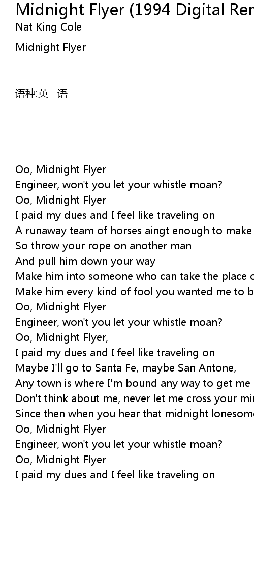 | Oo, Midnight Flyer, | |
