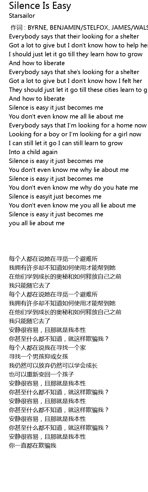 | [00:52.427] | Silence is easy it just becomes me |