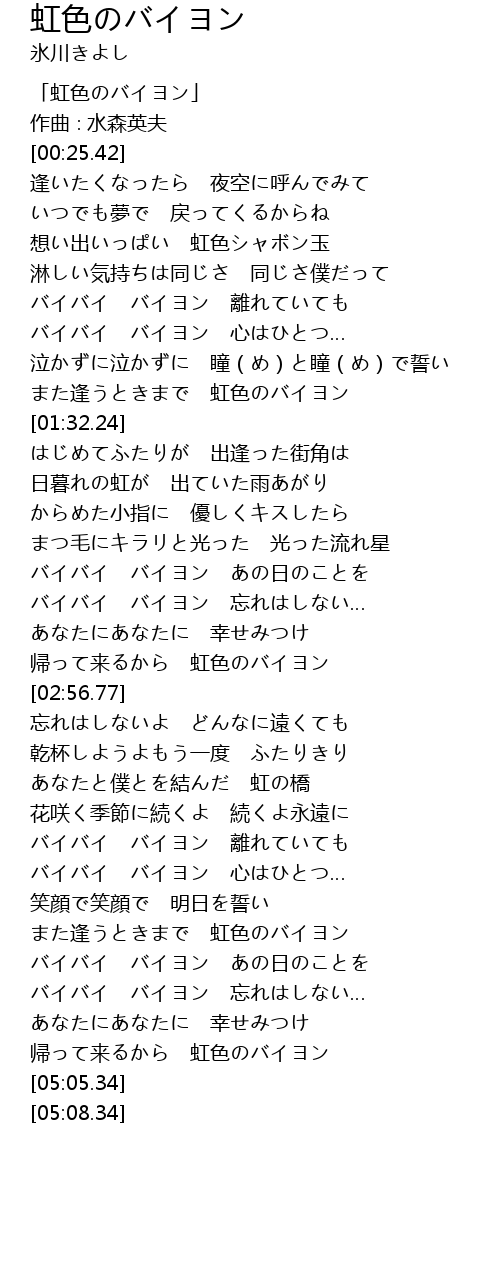 | [00:01.42] | 「虹色のバイヨン」 |