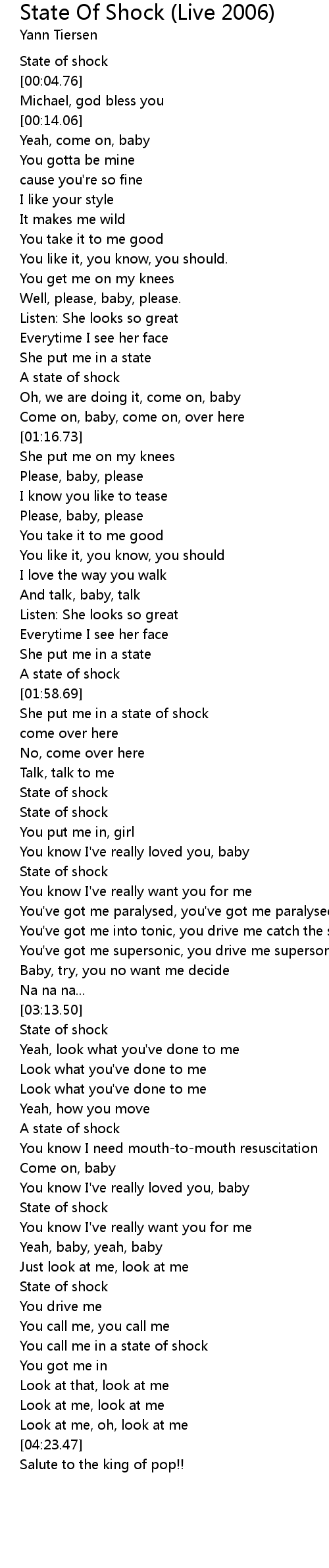 State Of Shock (Live 2006) Lyrics