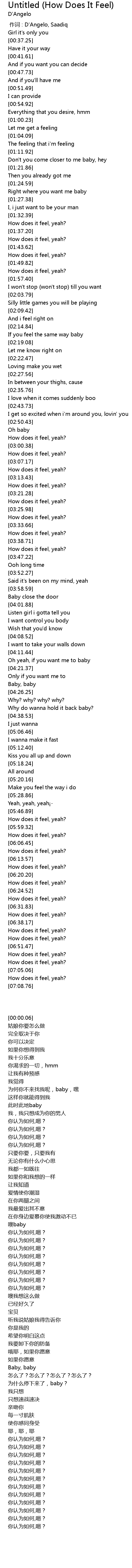 | [00:00.00] | 作词 : D'Angelo, Saadiq |
