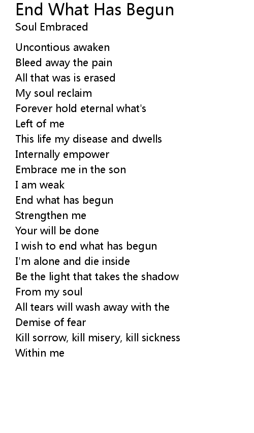 | I wish to end what has begun | |