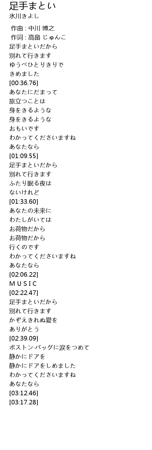 | [02:39.49] | ボストン·バッグに涙をつめて |