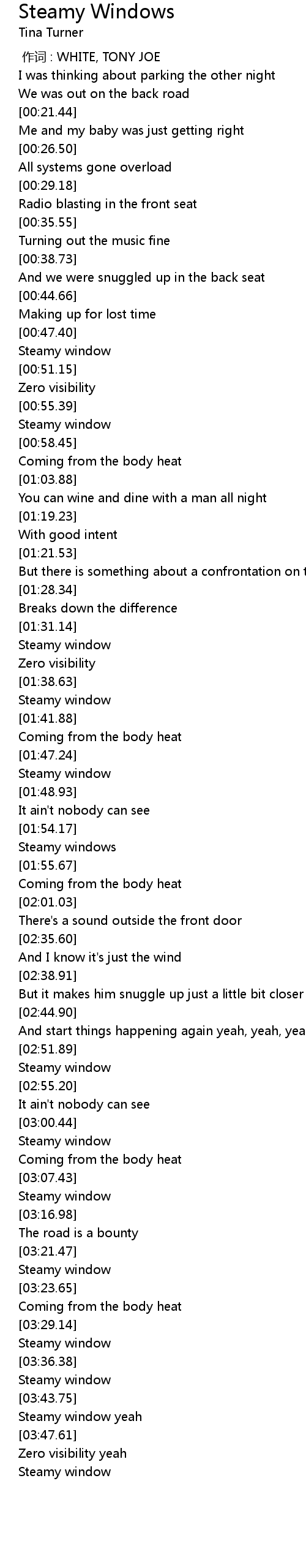 | [03:35.63] | Steamy window |