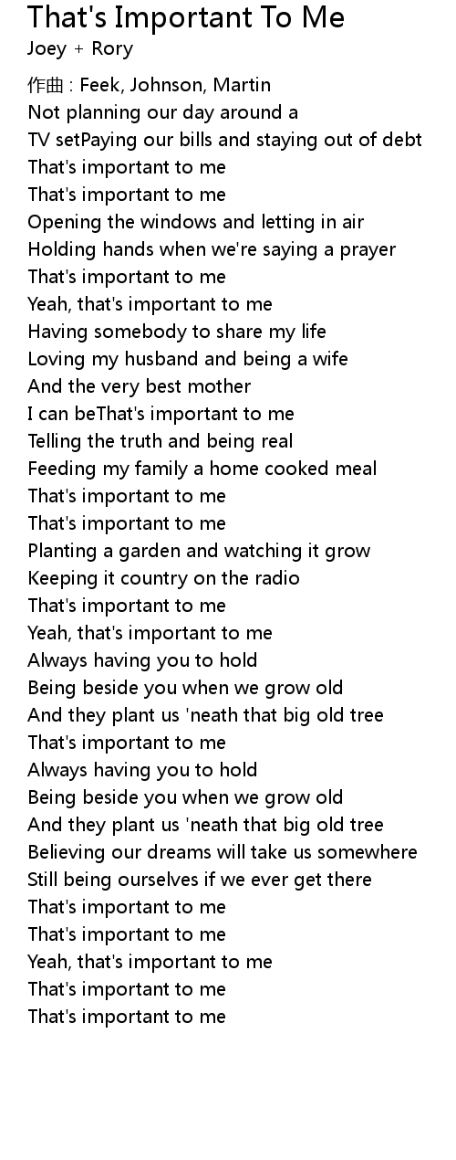 | Song | That's Important To Me |