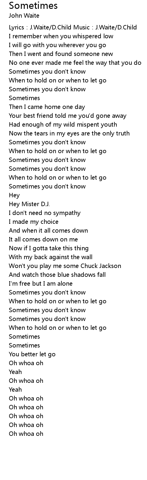 | Lyrics: J. Waite D. Child Music: J. Waite D. Child | |
