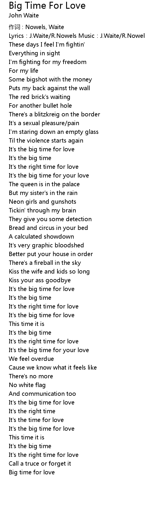 | It' s the big time for your love | |