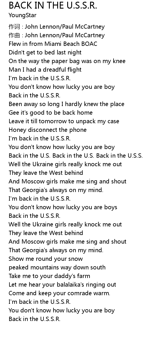 | I' m back in the U. S. S. R. | |