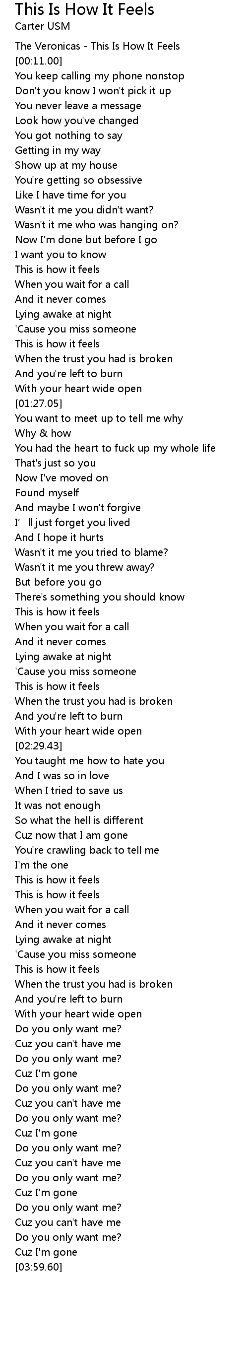 | [03:24.77] | This is how it feels |
