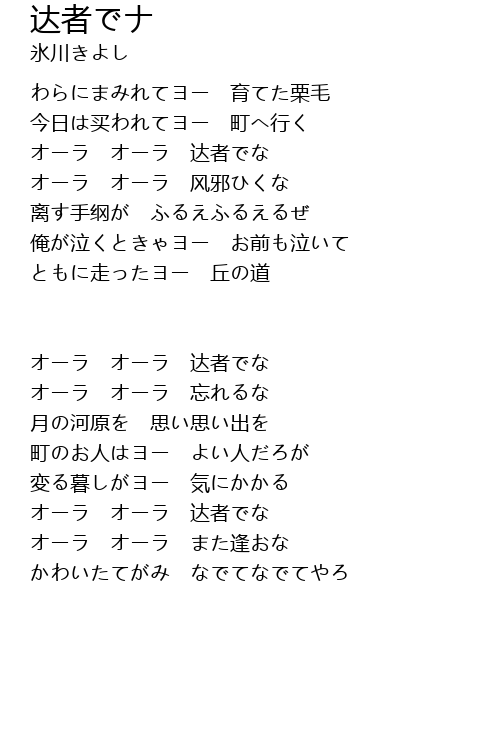 俺が泣くときゃヨー お前も泣いて |