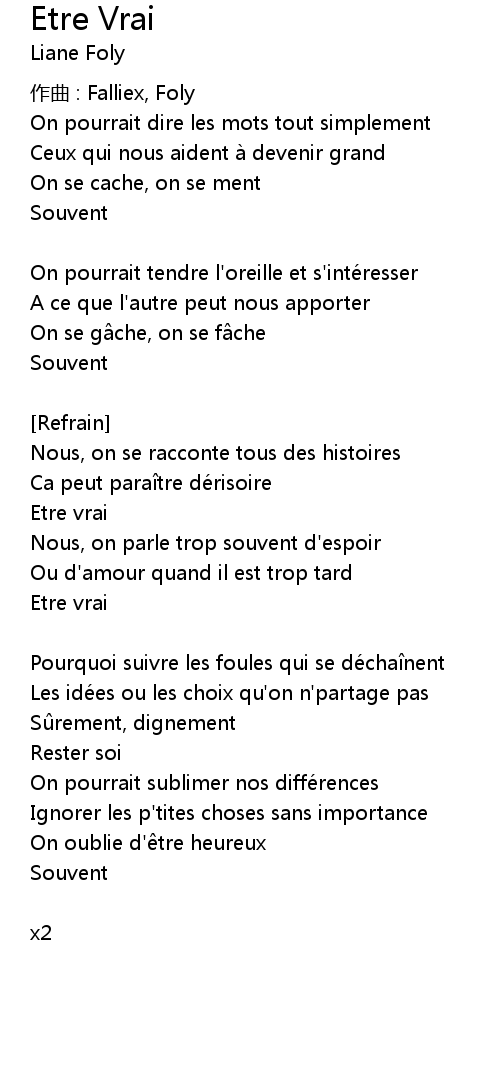 | Song | Etre Vrai |
