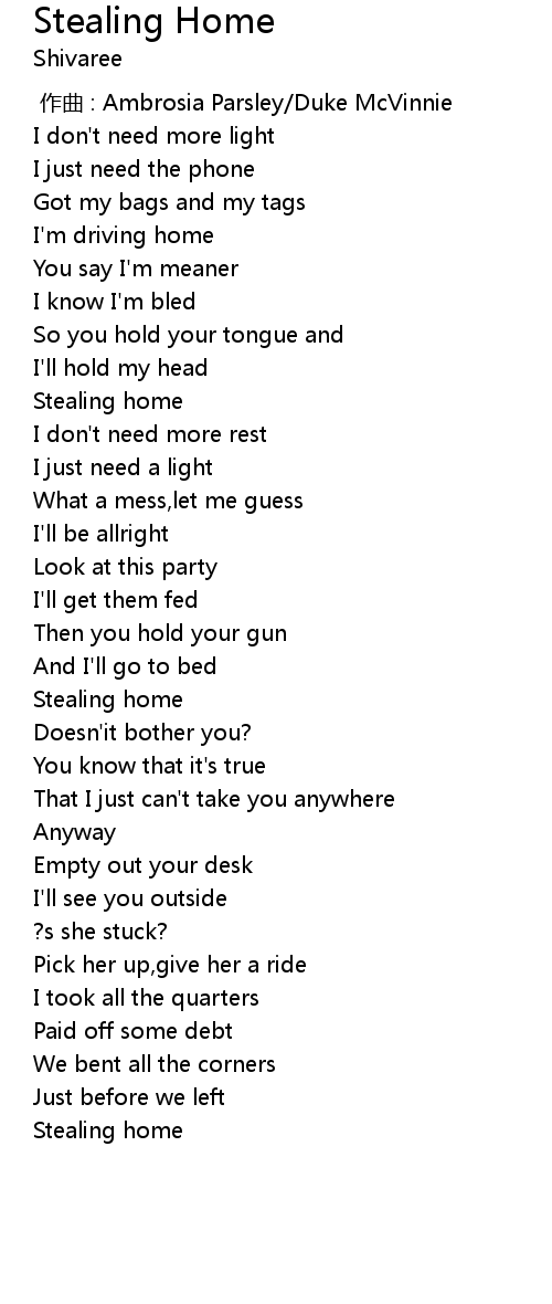 | [01:01.974] | Stealing home |