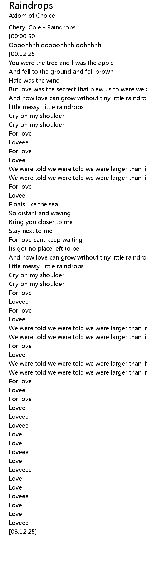 And now love can grow without tiny little raindrop tiny little tiny little messy little raindrops |