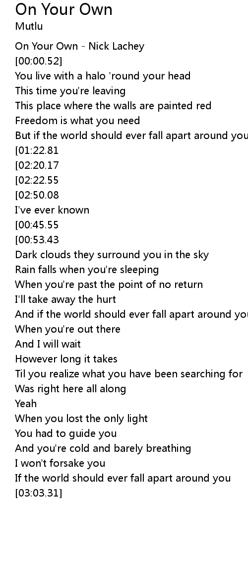 | [00:00.00] | On Your Own - Nick Lachey |