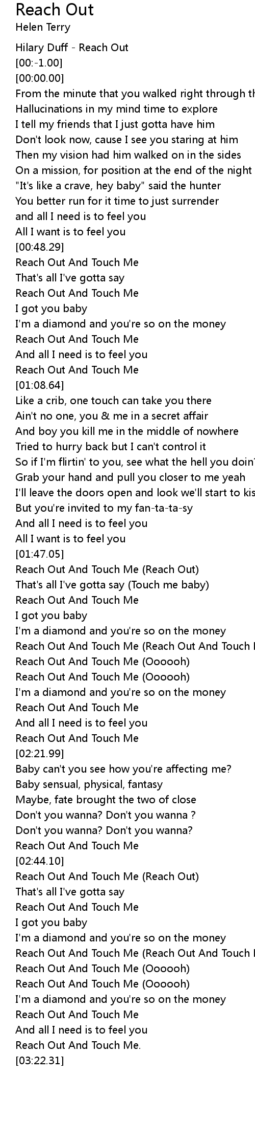 Reach Out And Touch Me. |