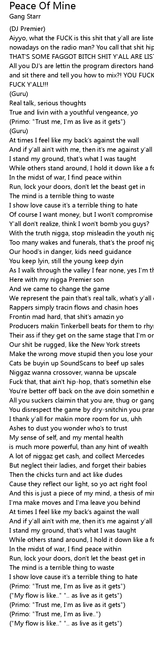 THAT'S SOME FAGGOT BITCH SHIT Y'ALL ARE LISTENIN TO! |