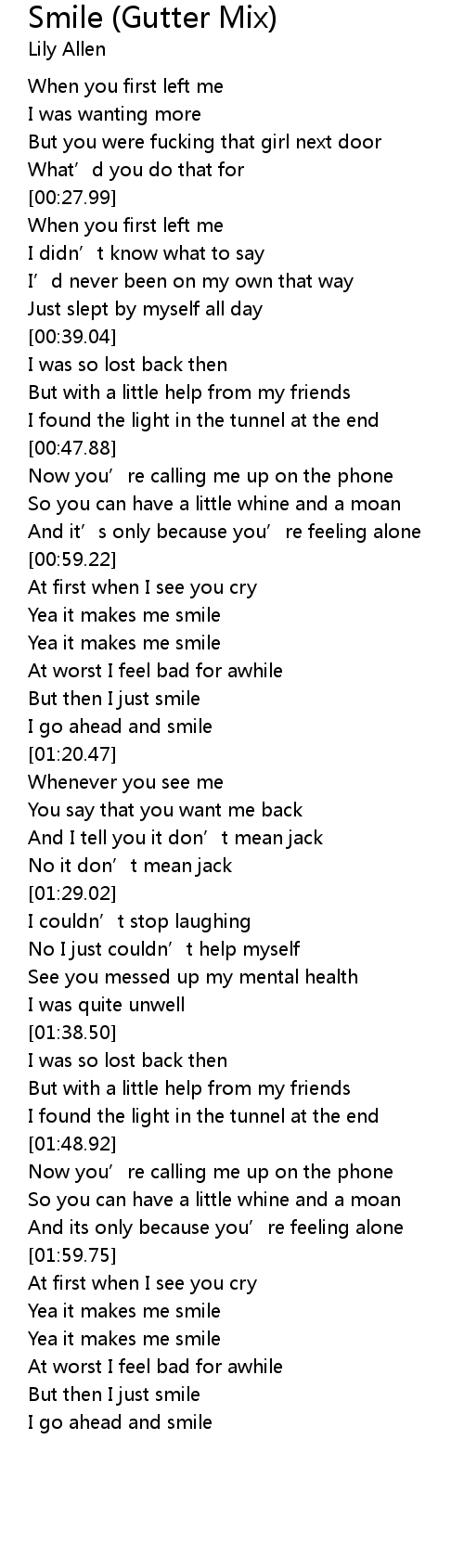 | [00:56.30] | And it’s only because you’re feeling alone |