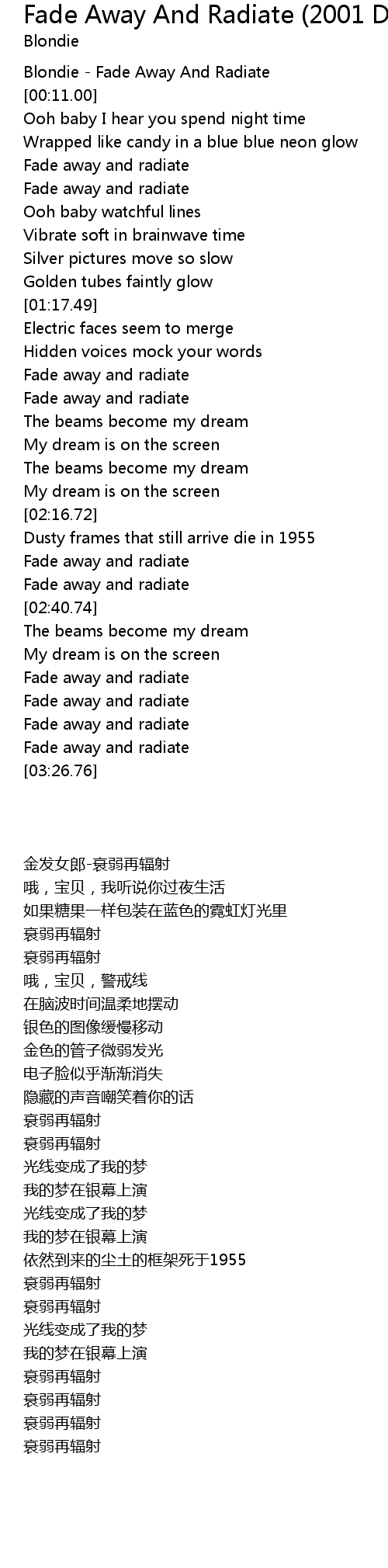 Blondie - Fade Away And Radiate |