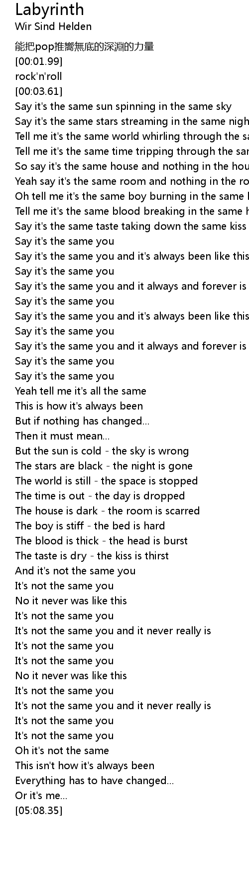 | [02:01.12] | Say it's the same you and it's always been like this |