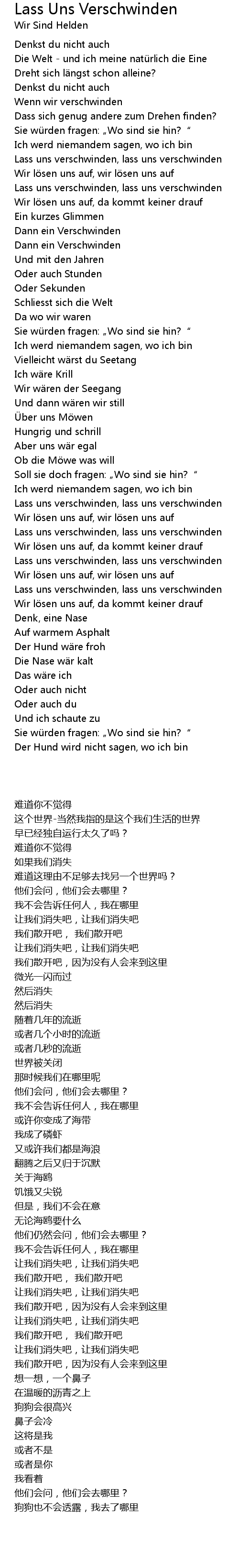 | [00:51.80] | Lass uns verschwinden, lass uns verschwinden |