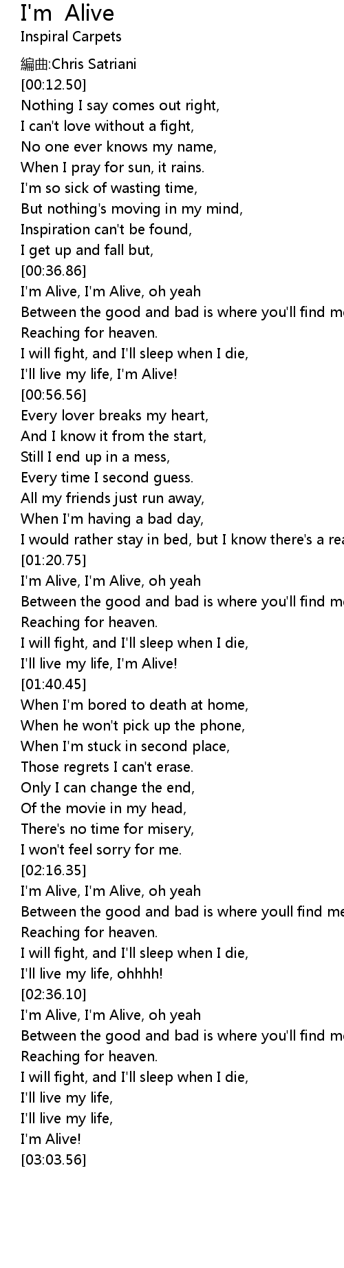 | [03:00.10] | I'm Alive! |