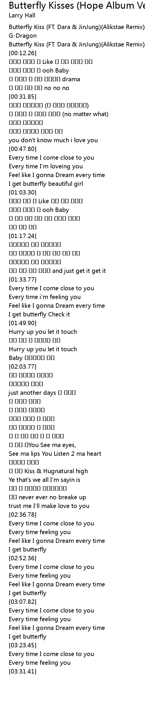 | [00:01.65] | Butterfly Kiss FT. Dara JinJung Alikstae Remix |