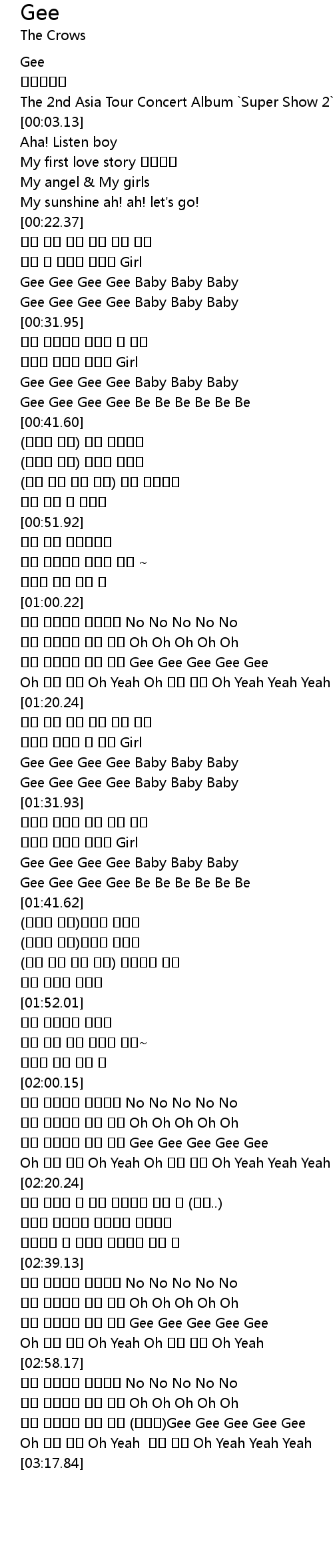 | [01:36.92] | Gee Gee Gee Gee Baby Baby Baby |