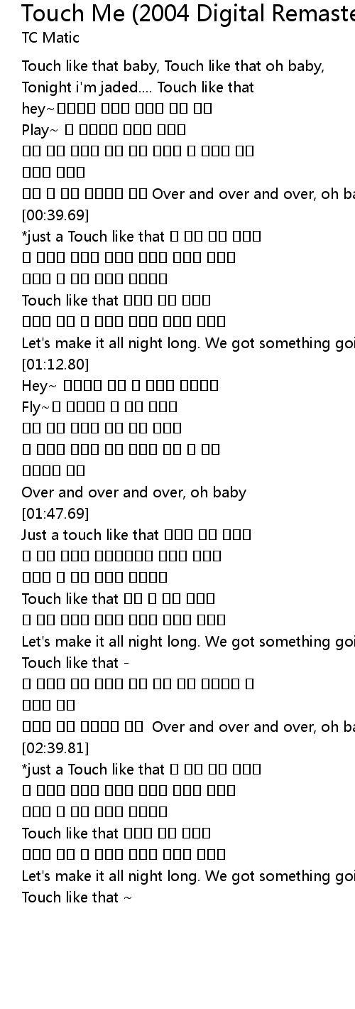 | [00:00.00] | Touch like that baby, Touch like that oh baby, |