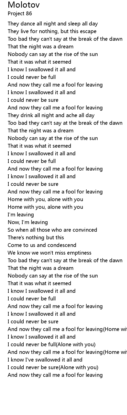 And now they call me a fool for leaving(Home with you) |