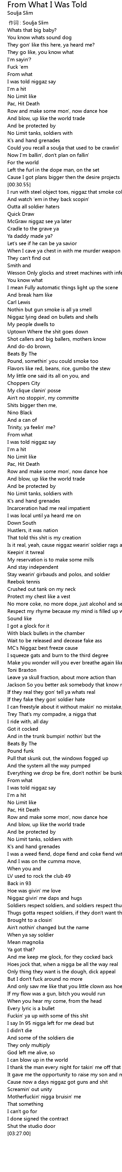 | [00:00.00] | 作词 : Soulja Slim |