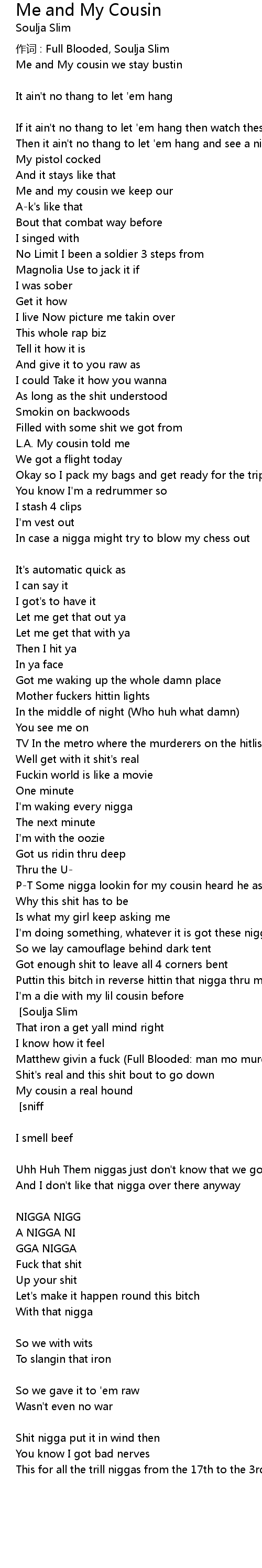 | 作词 : Full Blooded, Soulja Slim | |