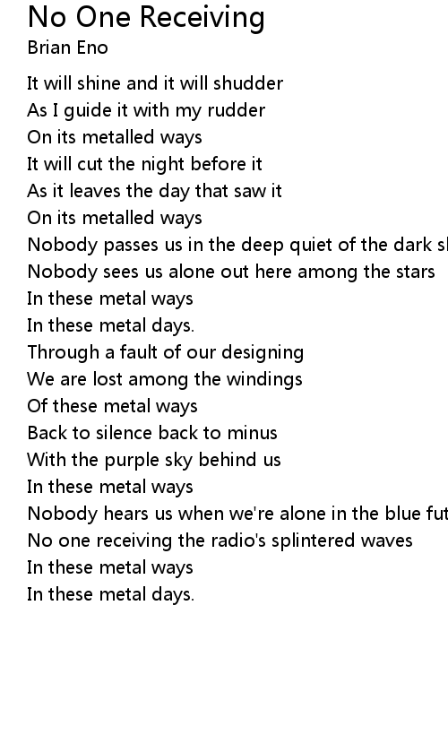 No one receiving the radio's splintered waves |