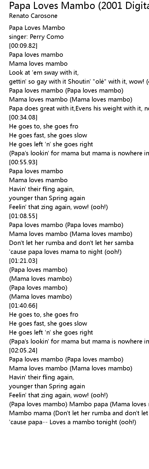 | [01:32.36] | Papa loves mambo |