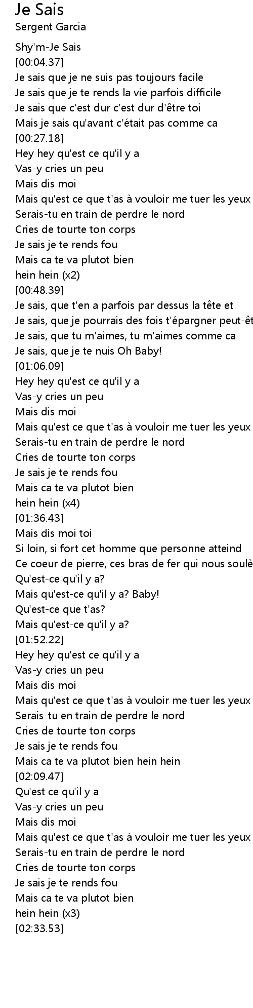 | [00:02.13] | Shy'm-Je Sais |