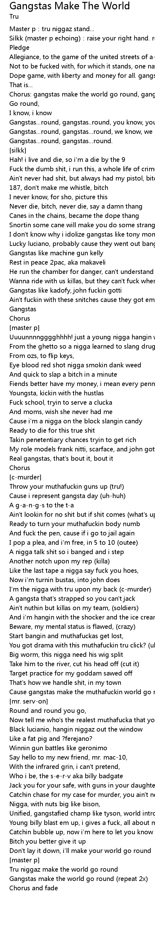 | Gangstas make the world go round repeat 2x | |