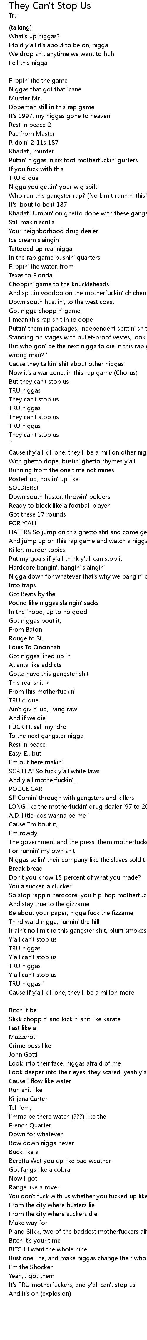 It's TRU motherfuckers, and y'all can't stop us |