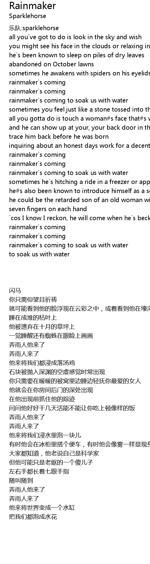 | [01:02.37] | rainmaker s coming to soak us with water |