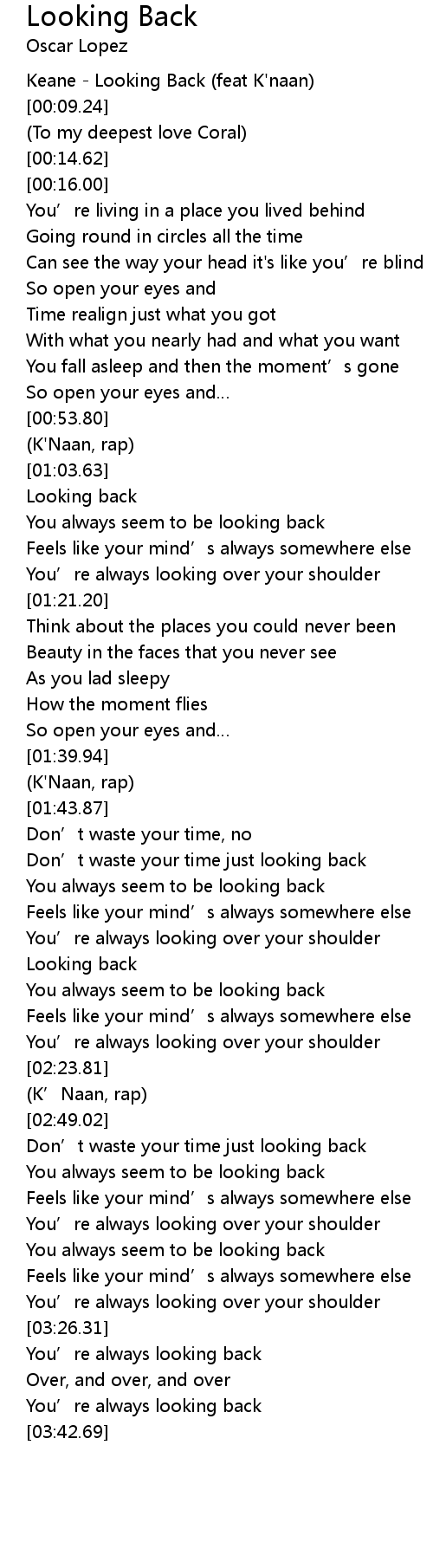 | [00:00.00] | Keane - Looking Back (feat K'naan) |