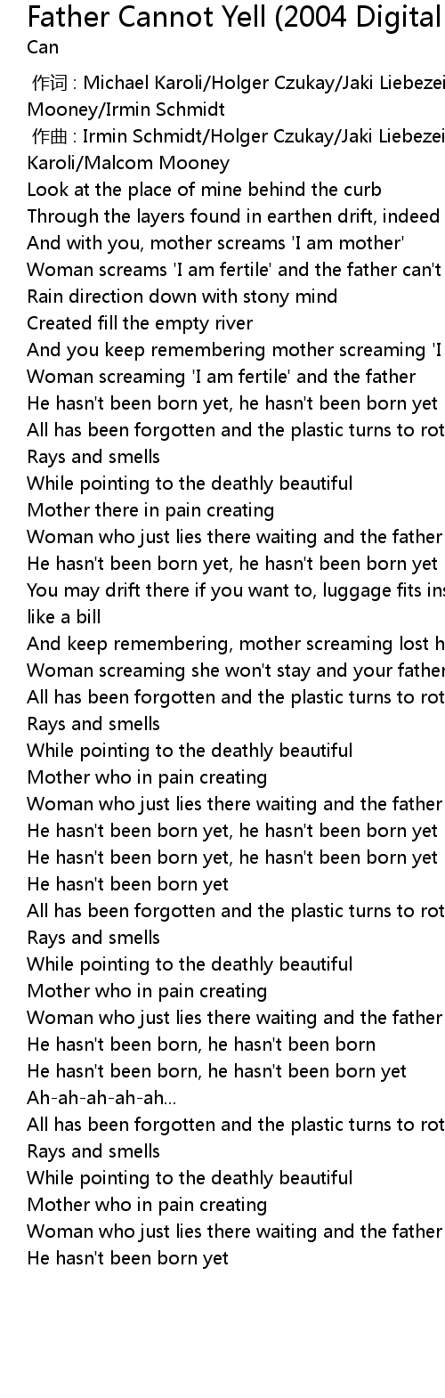 | [00:23.420] | And with you, mother screams ' I am mother' |