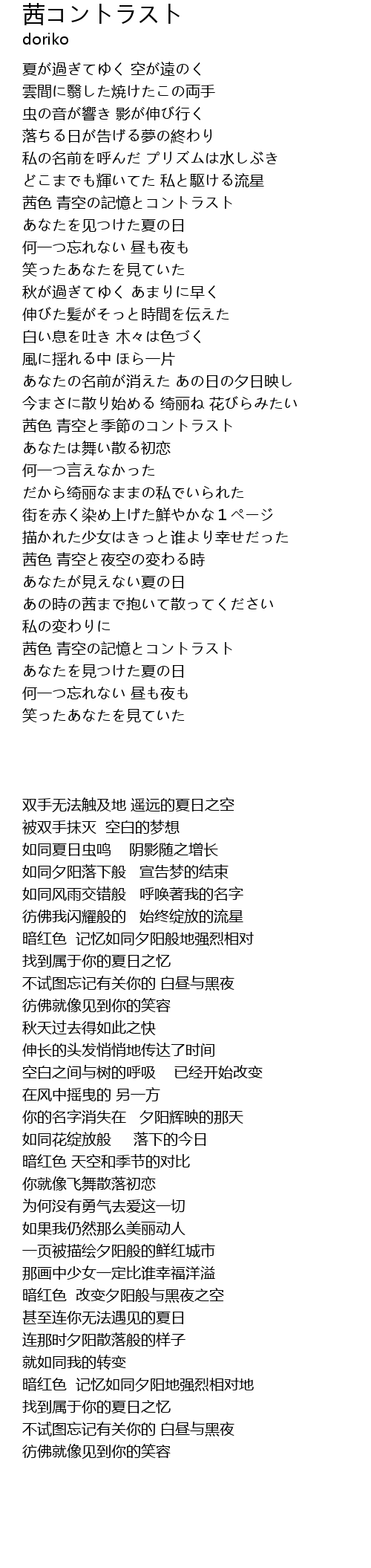 | [02:06.46] | 茜色 青空と季節のコントラスト |