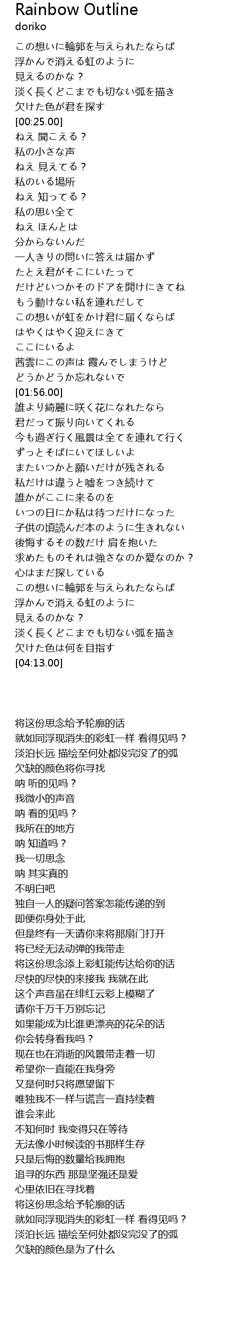 | [01:34.00] | この想いが虹をかけ君に届くならば |