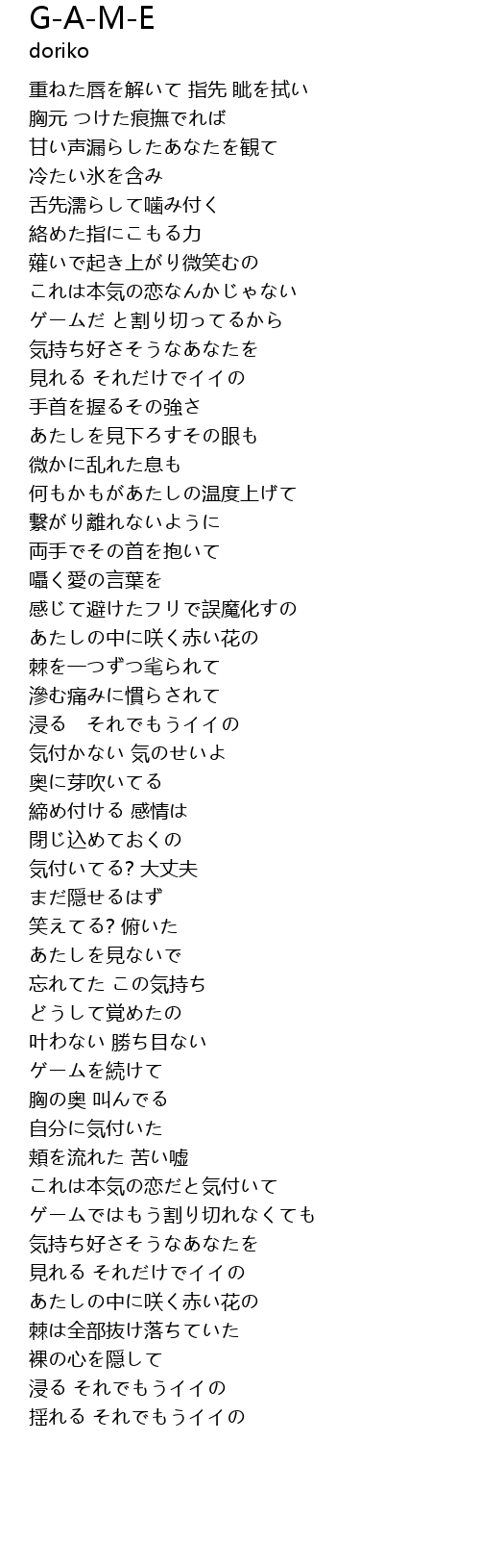 | [00:58.79] | ゲームだ と割り切ってるから |