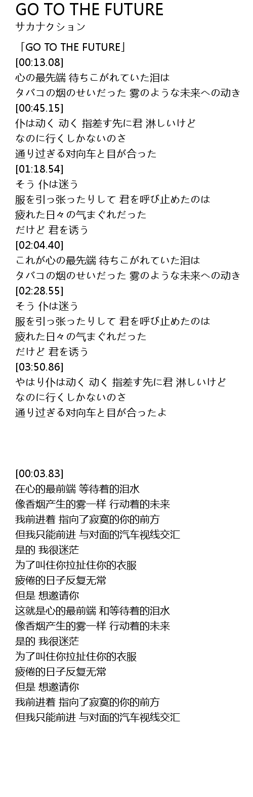 | [00:03.83] | 「GO TO THE FUTURE」 |