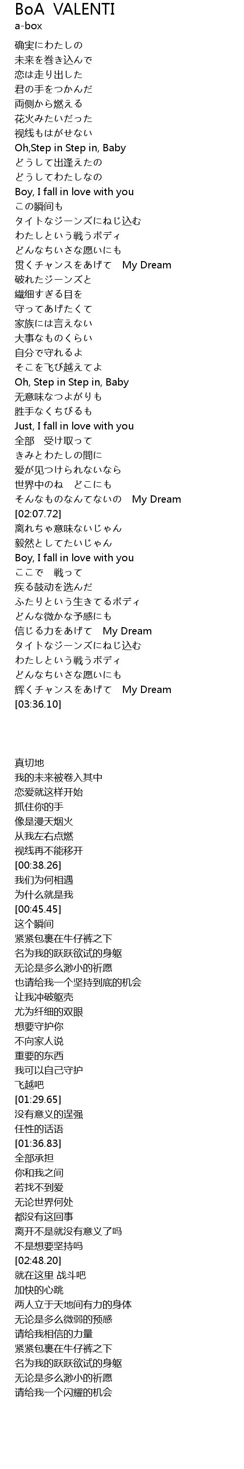 | Song | BoA VALENTI |