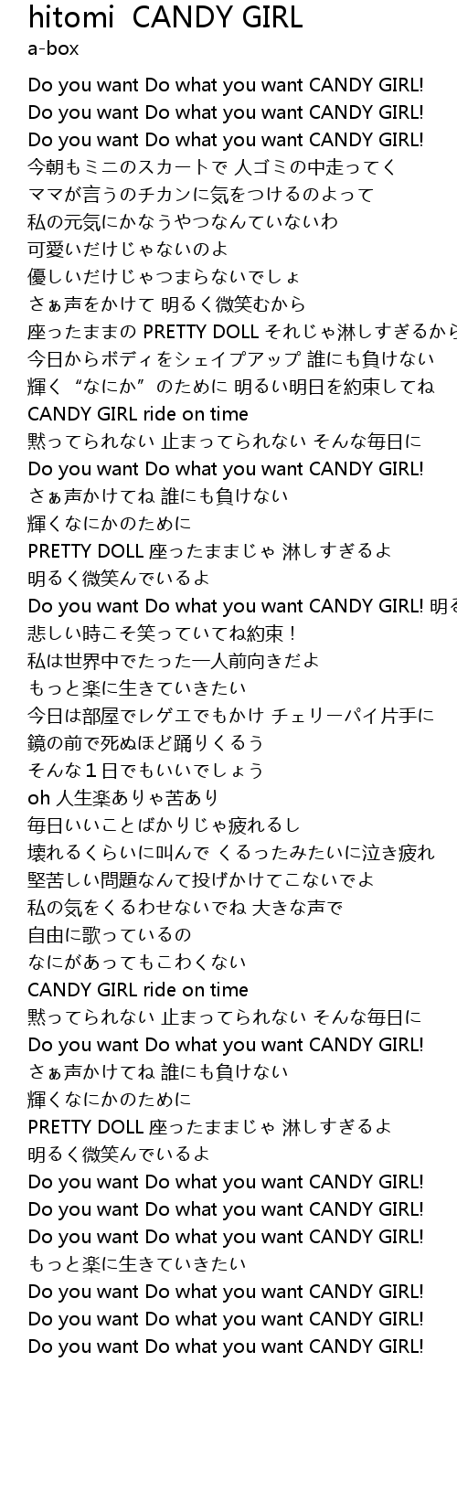 | [00:24.56] | Do you want Do what you want CANDY GIRL! |