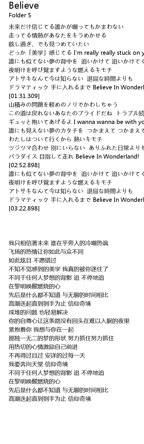 | [03:13.818] | shǒu rù Believe In Wonderland! |