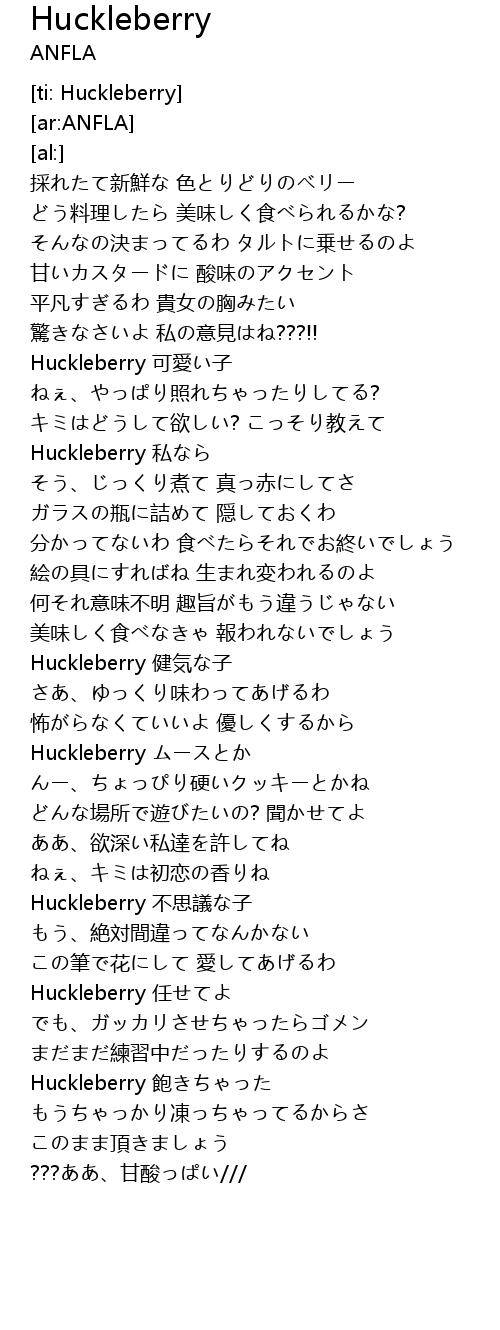 | [02:52.69] | Huckleberry 飽きちゃった |