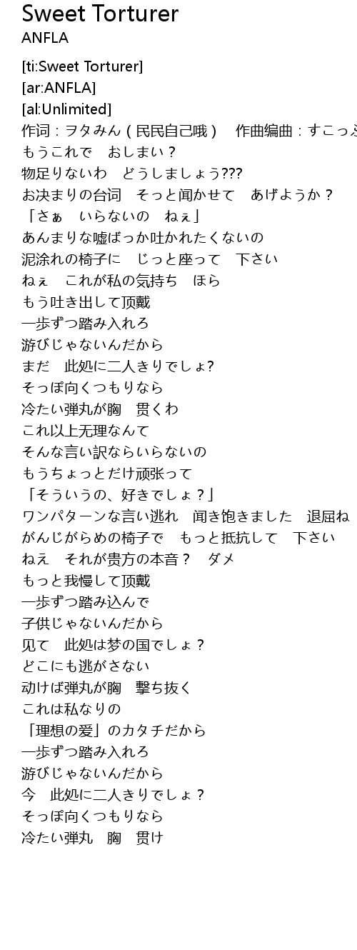 | [01:26.68] | がんじがらめの椅子で もっと抵抗して 下さい |